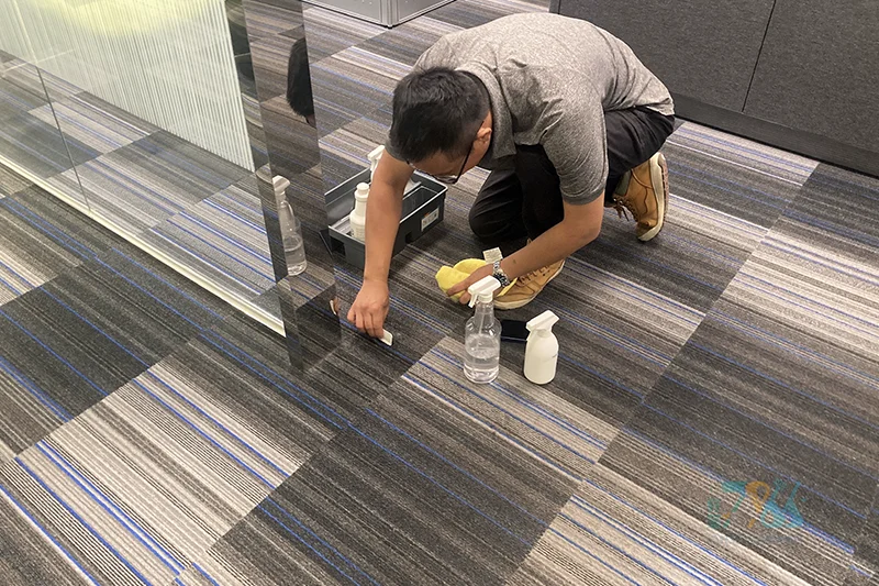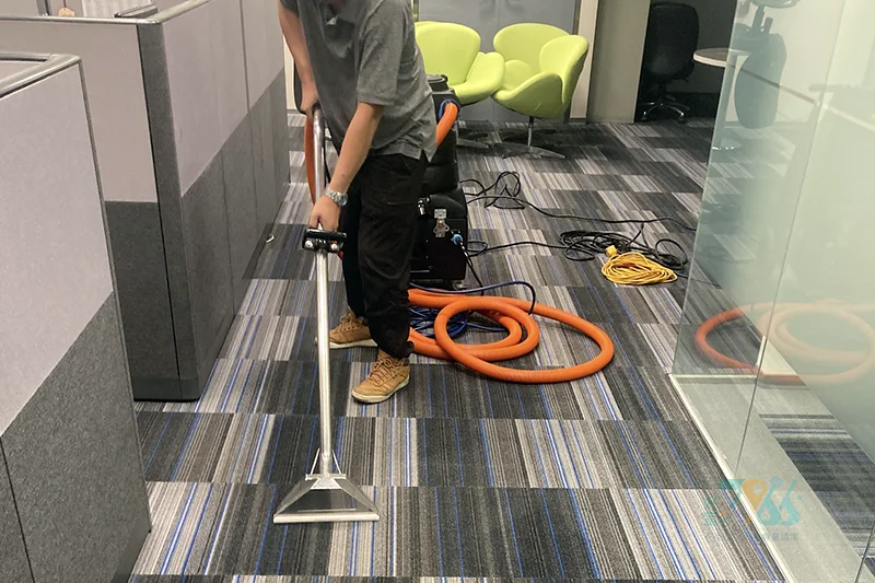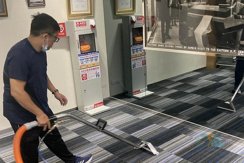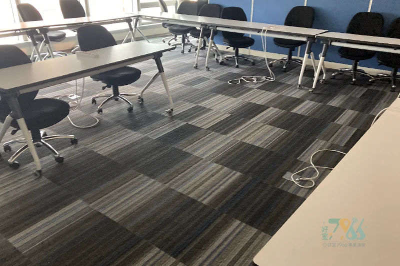 本次為遠東新世紀股份有限公司辦公空間進行地毯深層清潔服務,透過專業設備與環保清潔劑,有效清除塵蟎、髒污與異味,延長地毯壽命並維持環境整潔。