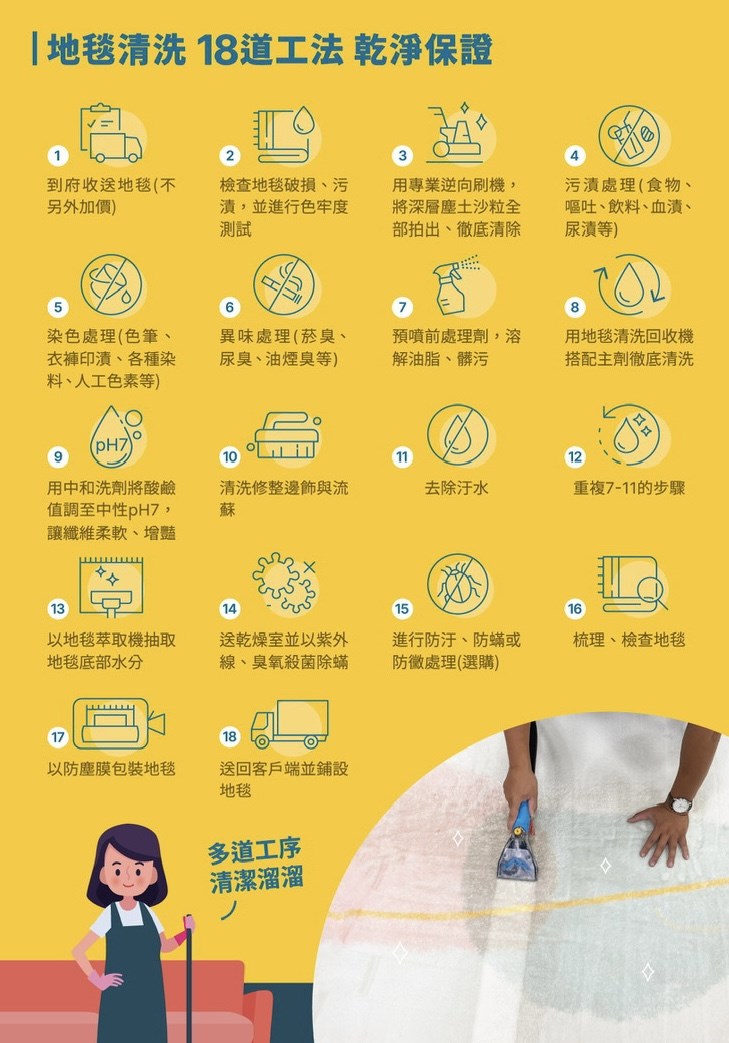 只要您選擇織物類的清洗,我們都推薦您選購防汙、防蟎、防霉處理,能讓您織物產品更經久耐用,防止水性與油性污染源。您可以參考我們的「織物清潔升級服務」的服務項目。